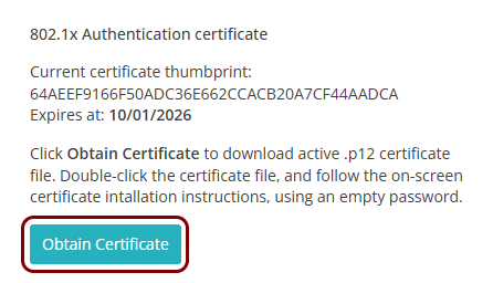 Note: You only need to obtain a certificate if your group in Portnox Cloud is set to use certificate-based authentication. If your group does not use certificates, you only need to configure the network adapters, either automatically or manually.