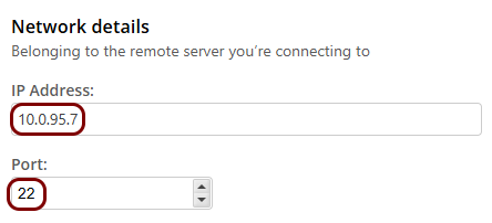 Note:By default, the Port field is pre-filled with the port number that is typical for the selected protocol. For example, port 22 for SSH. Unless your server is running on a non-standard port, keep the default port number.Note:Use the IP address and port configured in your Azure instance that hosts your resource. Ensure that the Docker container and the web application instance use the same Azure virtual network.